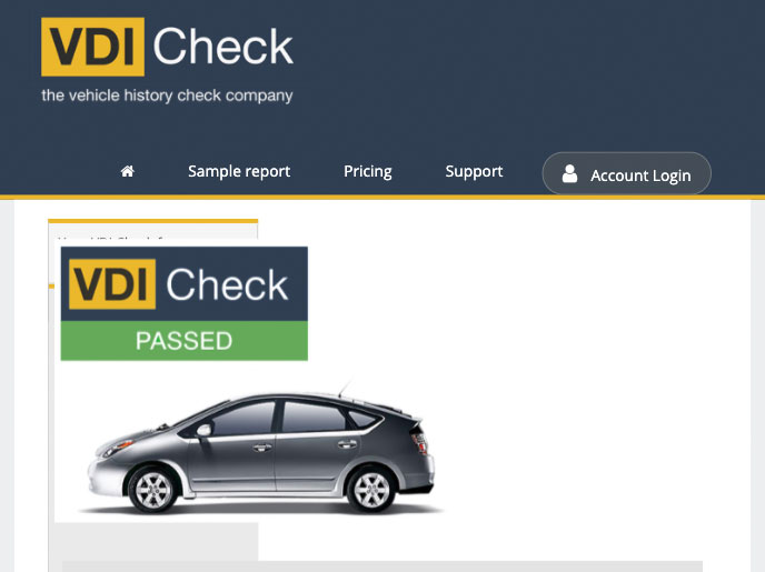 Check out the details for VDI Check's car data report, including basic and advanced report levels where offered, and a screenshot of a sample report from VDI Check.